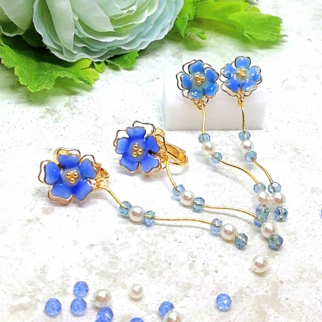 ピアス、イヤリング部分はサージカルステンレスを使用しておりますが、その他の部分(繋ぎのカン等)は真鍮やメッキ等通常の素材を使用しておりますのでご了承ください。