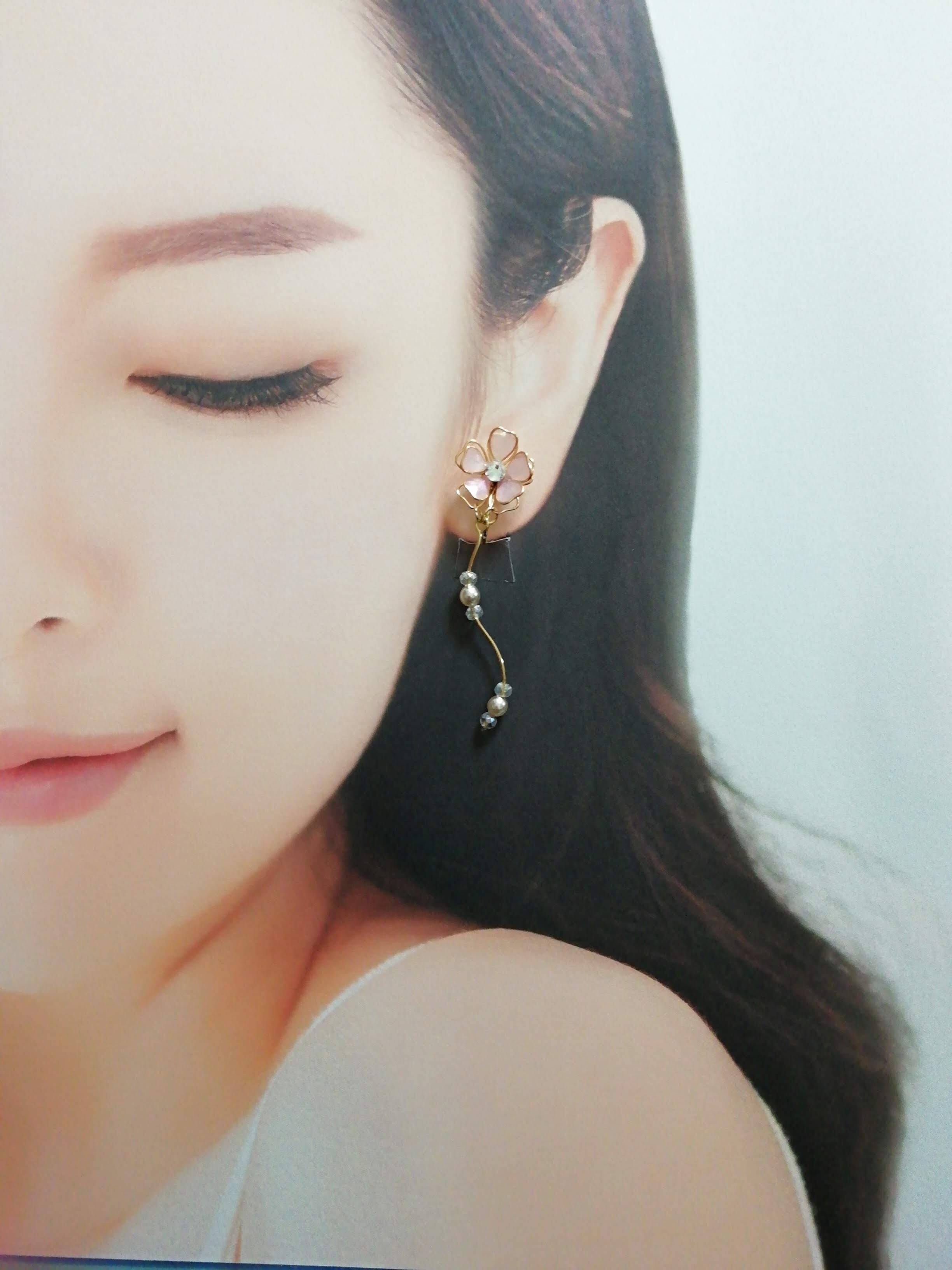 可憐な一輪の花を耳飾りに仕立てました。