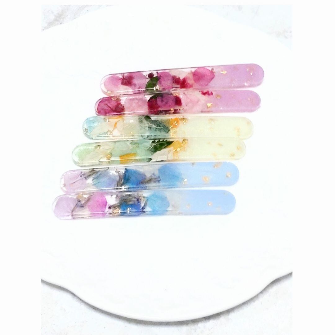 ドライフラワーを閉じ込めた、パステル調の柔らかな雰囲気が魅力です。